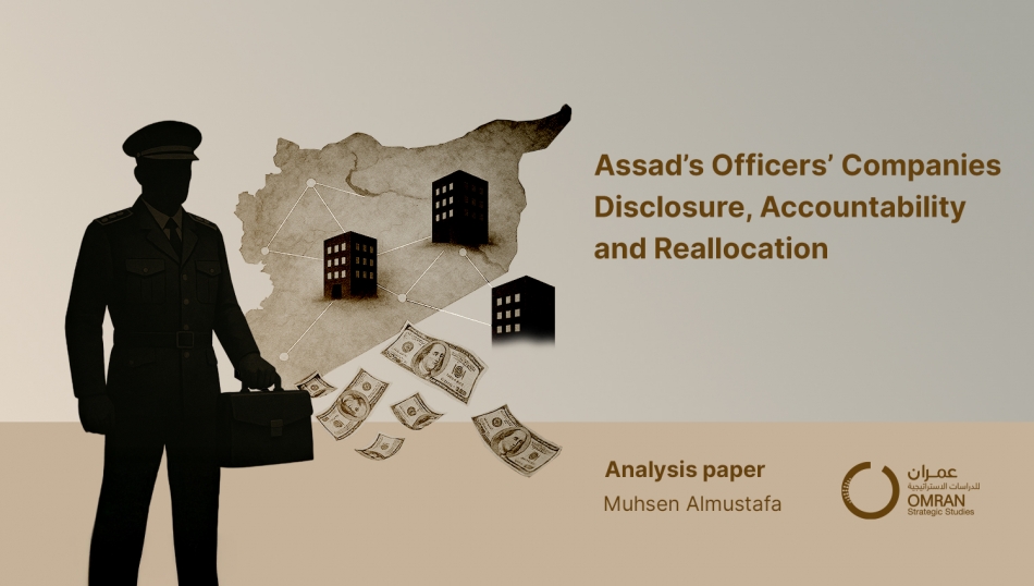 This paper seeks to establish a framework for addressing commercial activities linked to officers of the Assad regime and their family members. It does so by analyzing the motivations behind the creation of these enterprises and the objectives they were intended to serve. In addition, the paper outlines proposed future measures—including asset freezes and the redirection of resources toward national development. It also includes case documentation of several companies involving relatives of officers implicated in human rights violations.