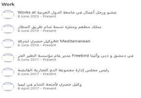 - Director General of al-Tayr al-Hor (FreeBird) in Damascus, Dubai, and Athens 8 June 2017–Present;