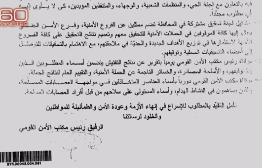 وثيقة رقم (1): تظهر طلب مكتب الأمن القومي من وزارة الداخلية والأجهزة الأمنية توجيه فروعها لتنفيذ أمر معين